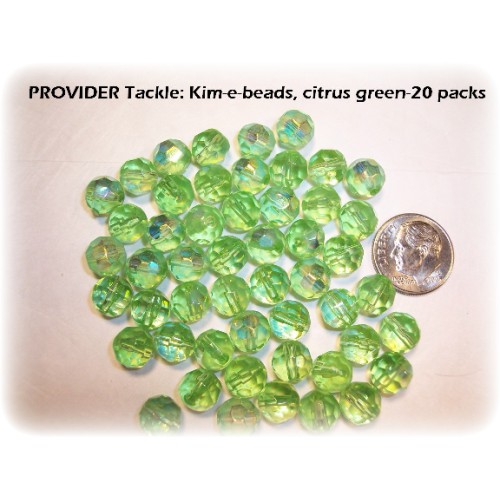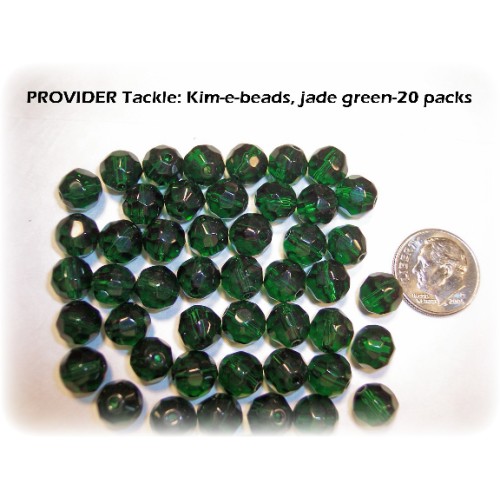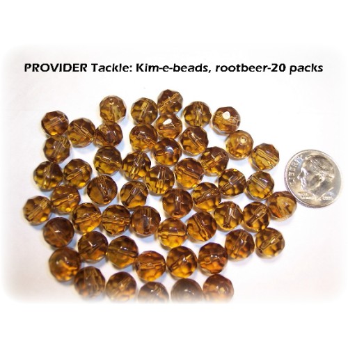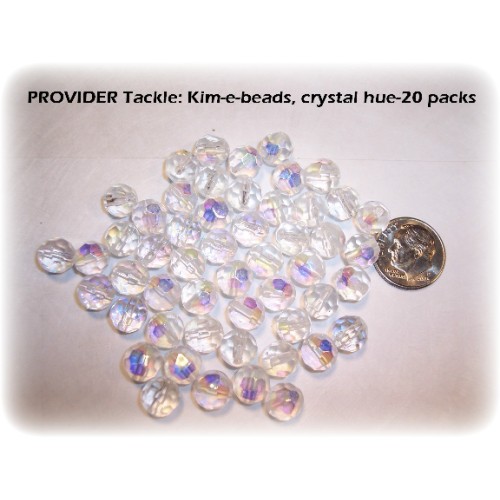 Kim-e-beads are faceted glass beads and used for Carolina rigging as well as split shotting or if you just want to make more noise using a Texas rig. Kim-e-beads come in 7 colors and are 8mm. A perfect size for a bead. Sold in 20 packs, these are a must in your tackle box for fishing. Art Ferguson personally caught his biggest bass and THE biggest bass on the BASS Tour in 2005 on a Carolina rigged Yamamoto Senko with a Kim-e-bead. Actually, the beads were given to him by Fred and Kim, friends of his and Art promised if he ever could, he would repay them by using their name, hence; Kim-e-beads. ENJOY! Order all the colors for different fishing situations and water clarity.