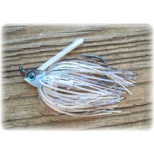 flake for extra flash, awesome skirt colors and an Owner Super Strong 4/0 hook with a 30 degree bend for perfect movement through grass or around wood. It is very hard